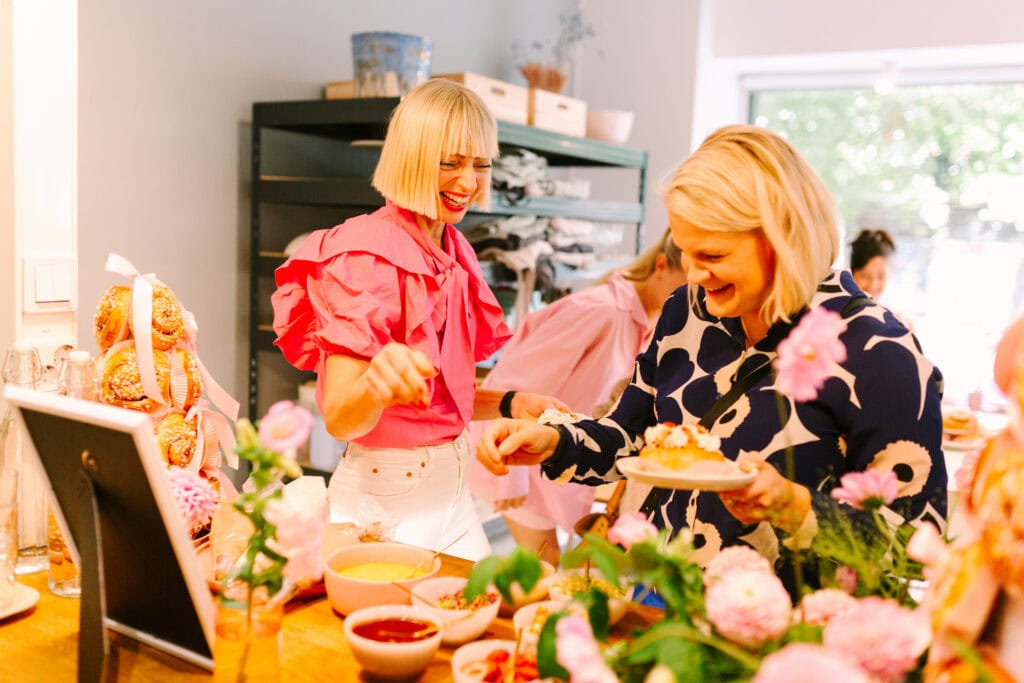 teeman ympärille: ”Rohkeus olla oma itsensä – henkilökohtainen kasvutarina itseään pienentämättä. Siihen kuuluu myös rohkeus pukeutua näkyvästi, kantaa koruja, jotka heijastavat omaa persoonaa.” Afterwork-henkisessä tapahtumassa jokainen vieras sai oman, juuri häntä kuvaavan Lumoava Studio -korusetin. Paikan päällä kuultiin Hannan inspiroivan puheenvuoron lisäksi Lumoavan omistajan tarina rohkeudesta, jota tarvittiin kotimaisen perheyrityksen perustamiseen. Visuaaliset yksityiskohdat koruineen ja kukkineen viimeistelivät tapahtuman lumoavan tunnelman.
