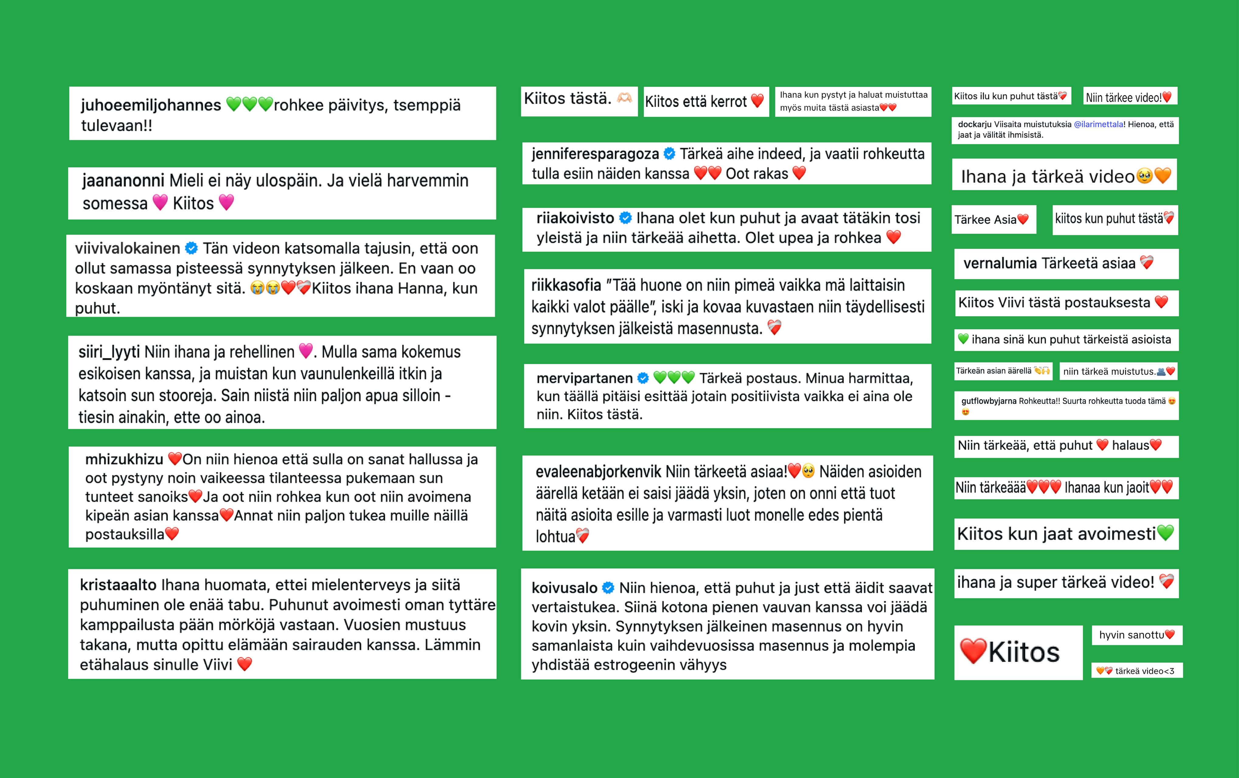 Ennen kaikkea, ihmiset ilahtuivat vilpittömästi tärkeistä sisällöistä ja saivat paljon kaivattua vertaistukea ja rohkaisua asioista ääneen puhumiseen.